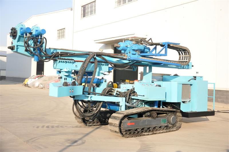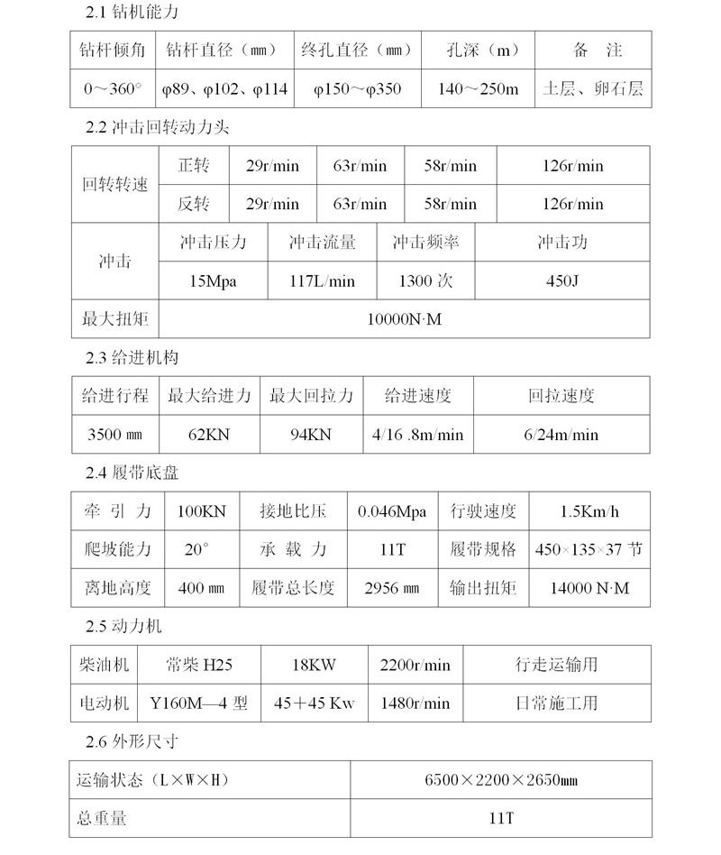 全液壓控制,機身結(jié)構(gòu)堅固,設計理念先進,儀表監(jiān)控,操作靈活方便,充分保證設備的實用性能。設備采用電動機作為主動力源,并且備有一個18Kw的小柴油機作為無電源時行走及搬運上下車時使用。電機總功率為90KW,其中用于用于動力頭回轉(zhuǎn)的有65Kw,所以鉆機回轉(zhuǎn)扭矩比同類型的要大將近一倍,沖擊力和提升力都非常強大,工作效率高,可一機多用,以邊坡錨固工程施工為主,也可以廣泛用于建筑深基坑、地鐵、隧道、鐵路、公路、地質(zhì)災害治理的錨固施工和小型樁的施工。